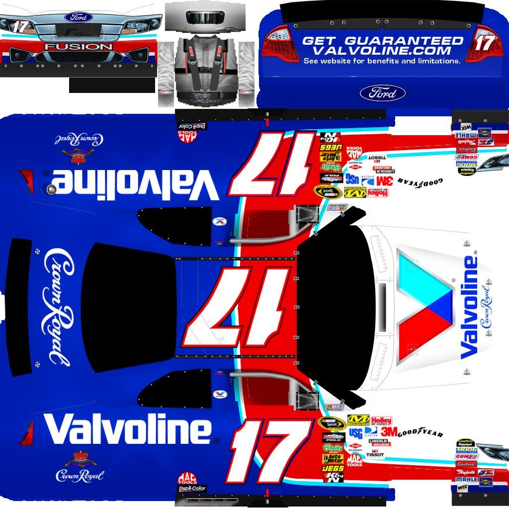 Hadn't painted a car since I did the World Cup carset a few months back. Here's the Valvoline scheme ran by Matt Kenseth and AJ Allmendinger this year, on a cup car, since that's the only mod that runs well on my computer. I tried to get a render from Ten0r's, but looks like they're having issues with the cup renders over there. So I'm posting the .jpg flat to request a render here. Comments welcome!