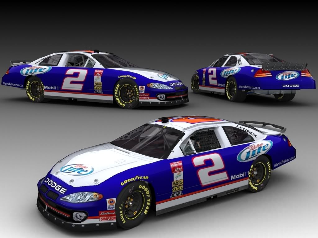 Rusty Wallace's 2003 Miller Lite/Victory Lap car to be rendered. Still WIP, if anyone knows where I can get the Victory Lap logo and/or Rusty Wallace's Trunk logo, that would be great!