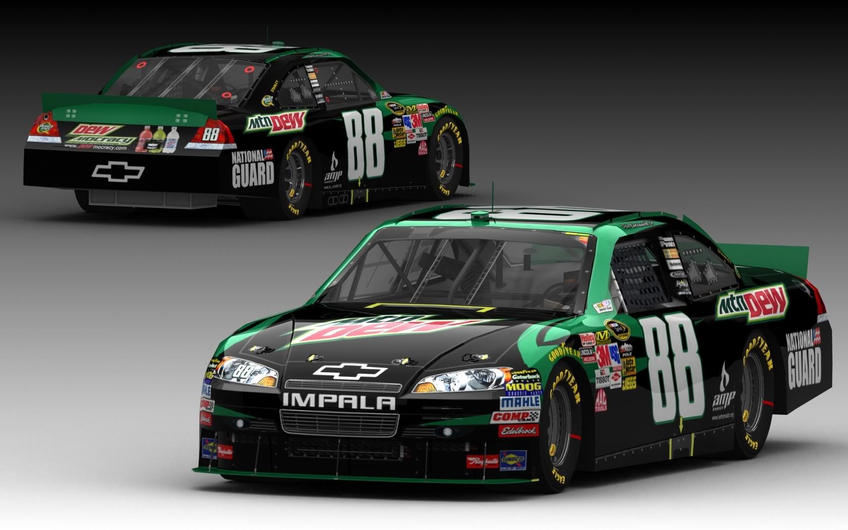 Could I get this rendered, please? Preferably a two car presentation, front and back. Thanks.