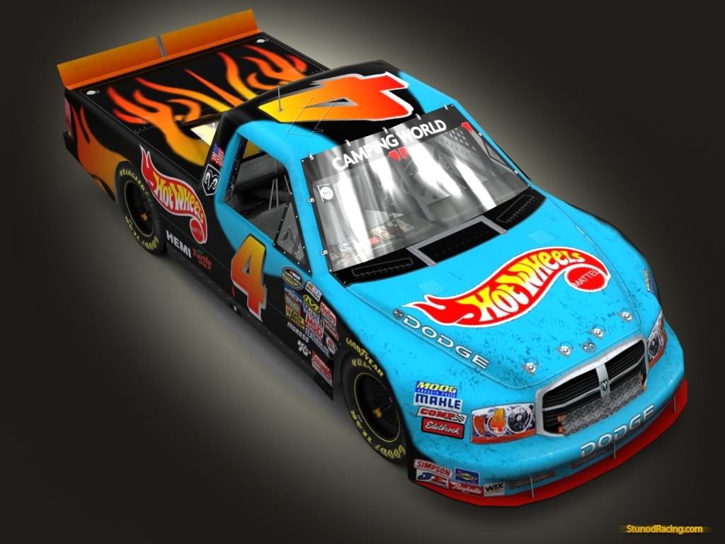 Here's my Hot Wheels #4 Dodge, done as a Bobby Hamilton Racing fictional. I'd like a render that shows the flames on the decklid really well.