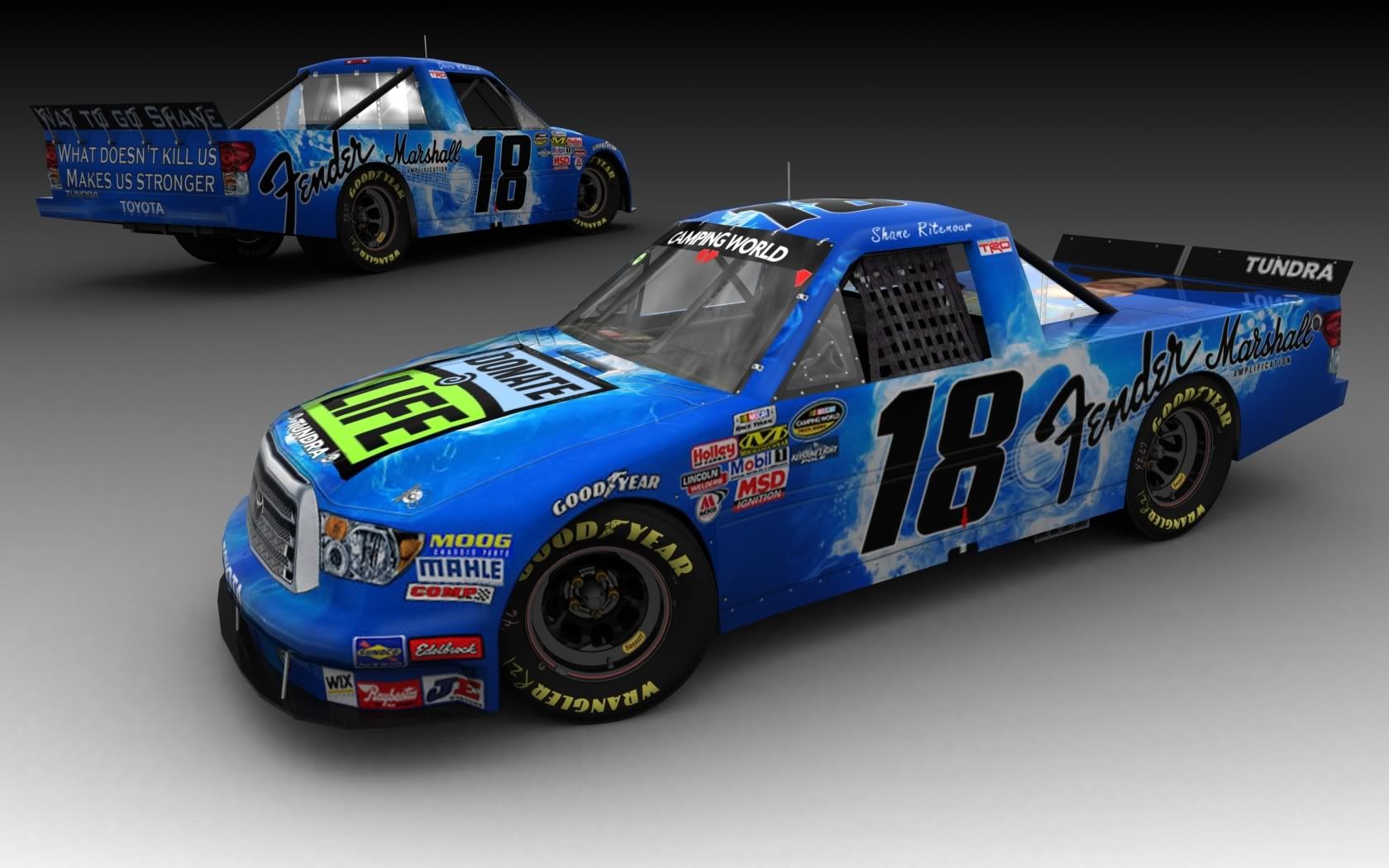 I need a render done for the 09 Truck Mod. The paint is on a Tundra base and the template is from BCRacing. I would like a render of the truck and if possible a render of the truck and crew. Thanks in advance.