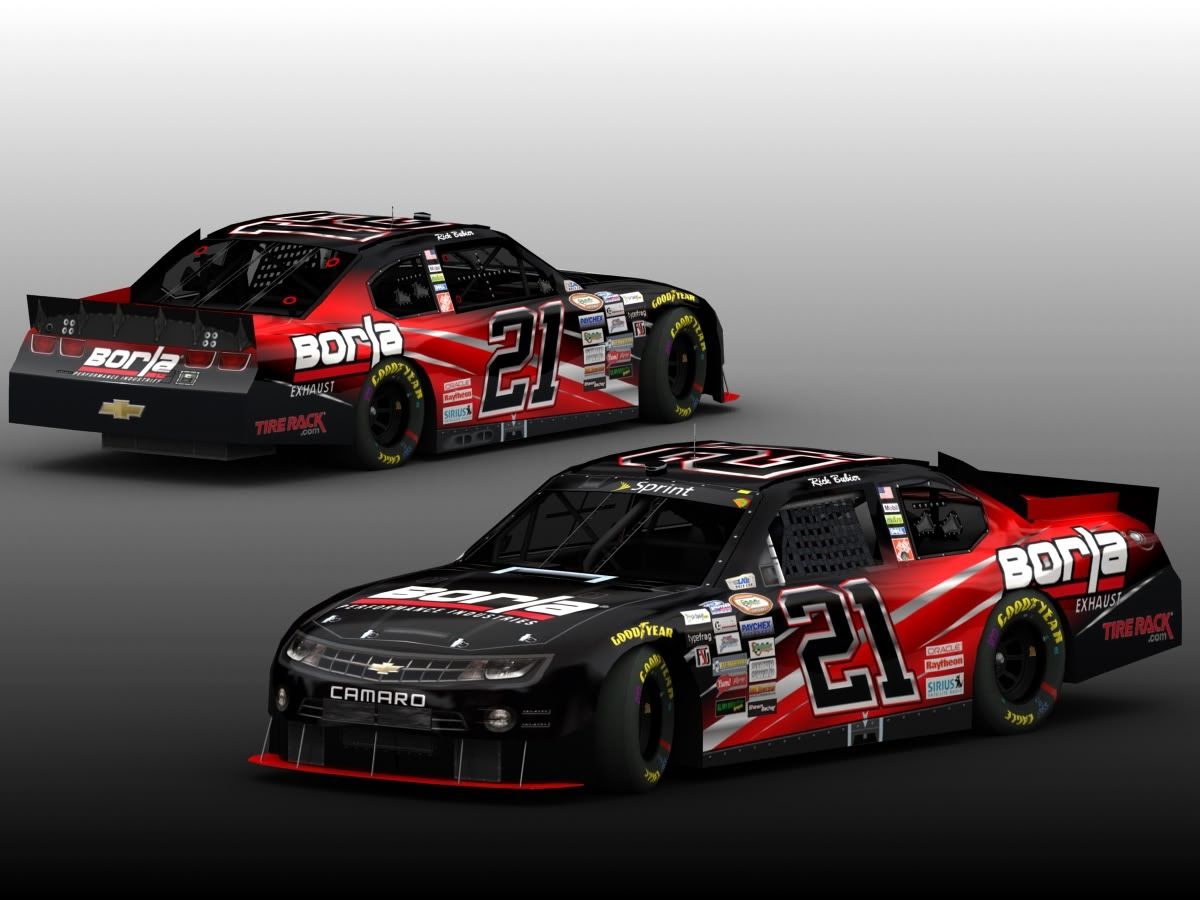 Last one for the week, I promise (maybe). Fictional #21 Borla Performance Chey Camaro. Base, numbers and main sponsor logos are mine. Contingencies from LNR, Secondary sponsors from SRD & MasGrapx. Thanks to baboontester here at SRD for the terrific renders.