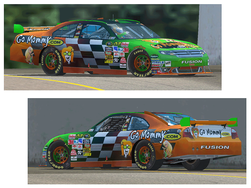 I really value your feedback. A while ago my Danica 2008 design was saved by y'all's advice. Though I've come to understand I'm never going to be a truly "quality" painter, I still like to get it on with paint ideas. So here is the "GoMommy.com" work in progress. Base layers from MasGrafx. Template MRioux. Everything else pretty much mine. Even at 2048 my renders look like 512. What am I missing here? What exactly IS a "HI-REZ" image?