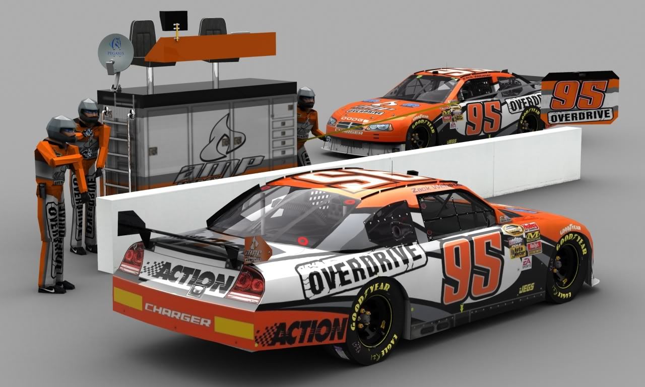 First one: #95 AMP Energy Overdrive Dodge Charger and Crew 1. Render with both car and crew. 2. Render of just the car. Thanks in advance!